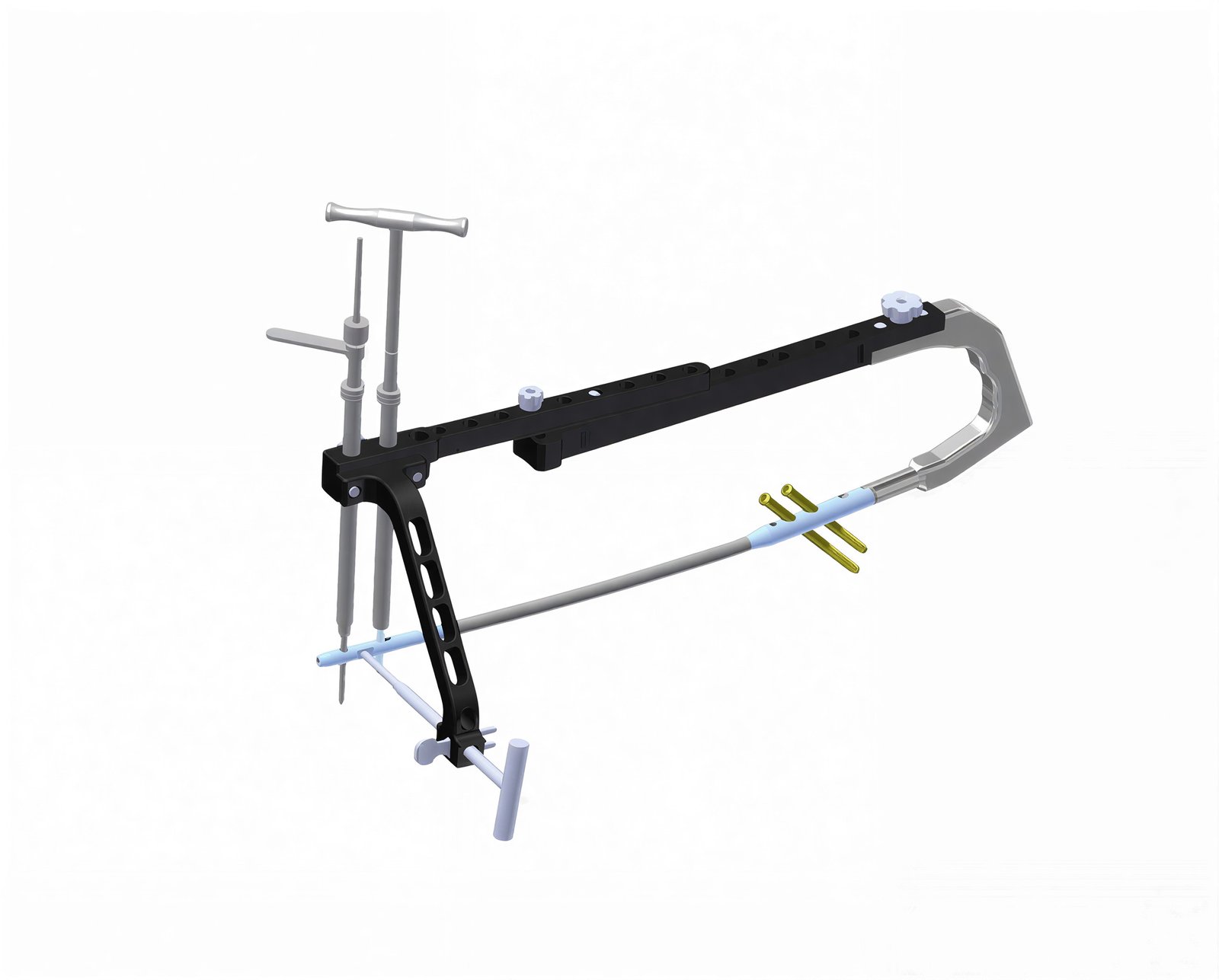 - Dispositivo de orientación mecánica rápido y preciso para bloqueo proximal y distal.